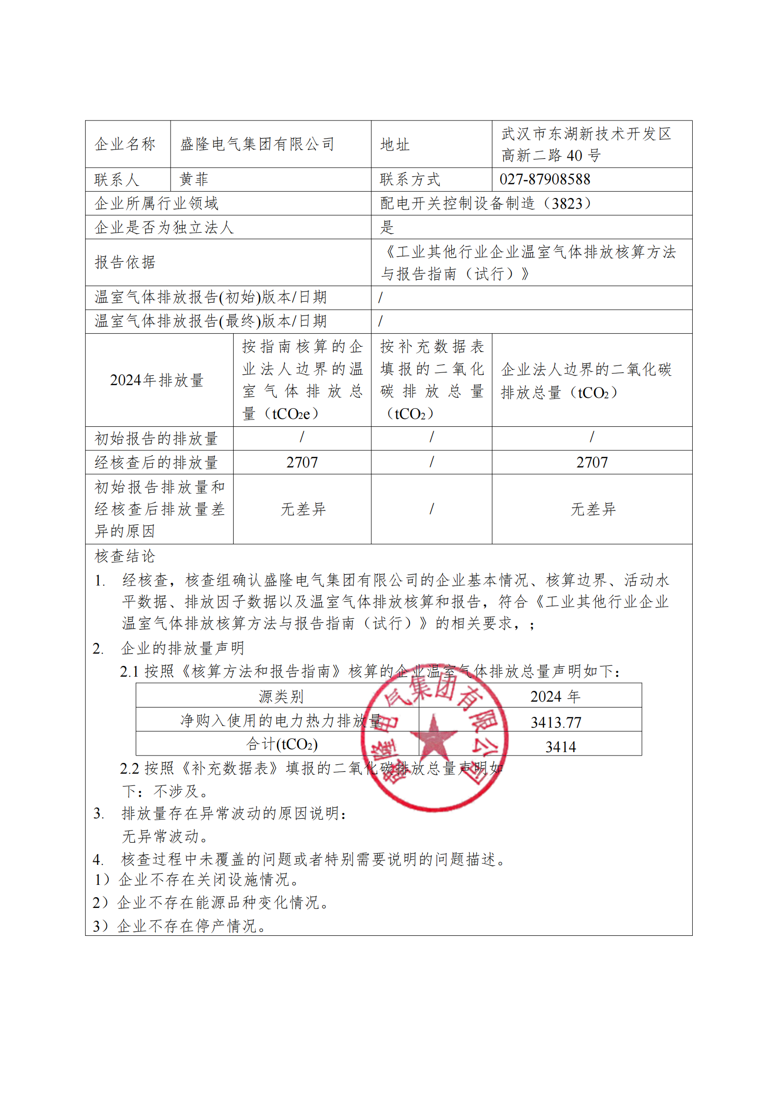 凯发K8天生赢家一触即发电气集团有限公司2024年度碳排放自核查报告